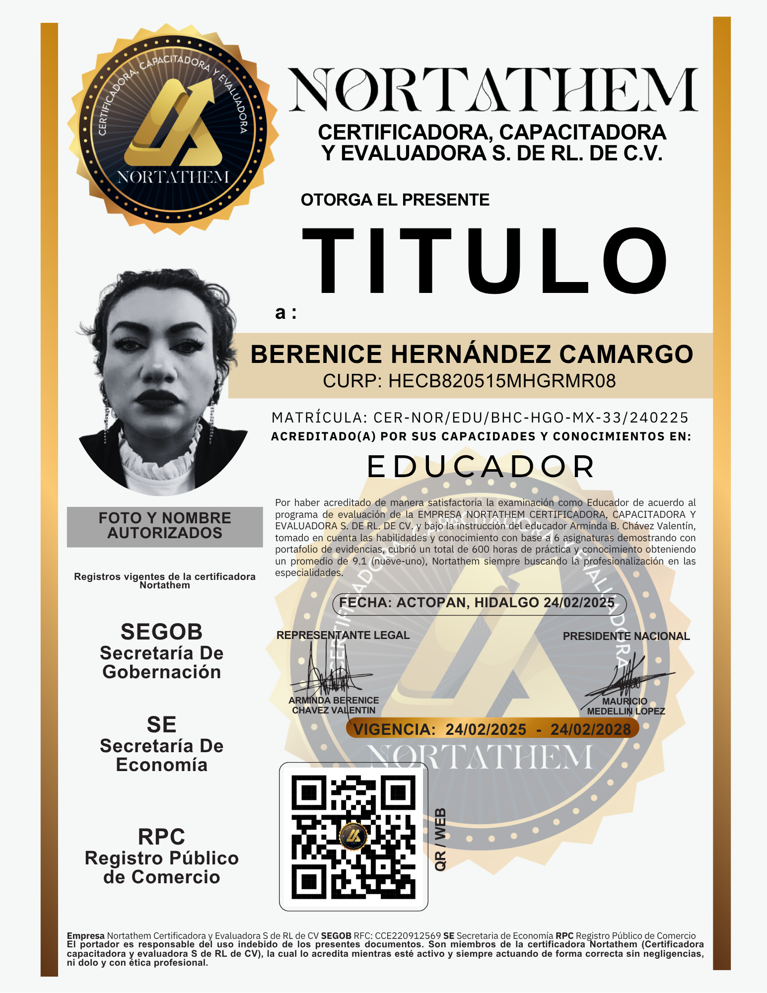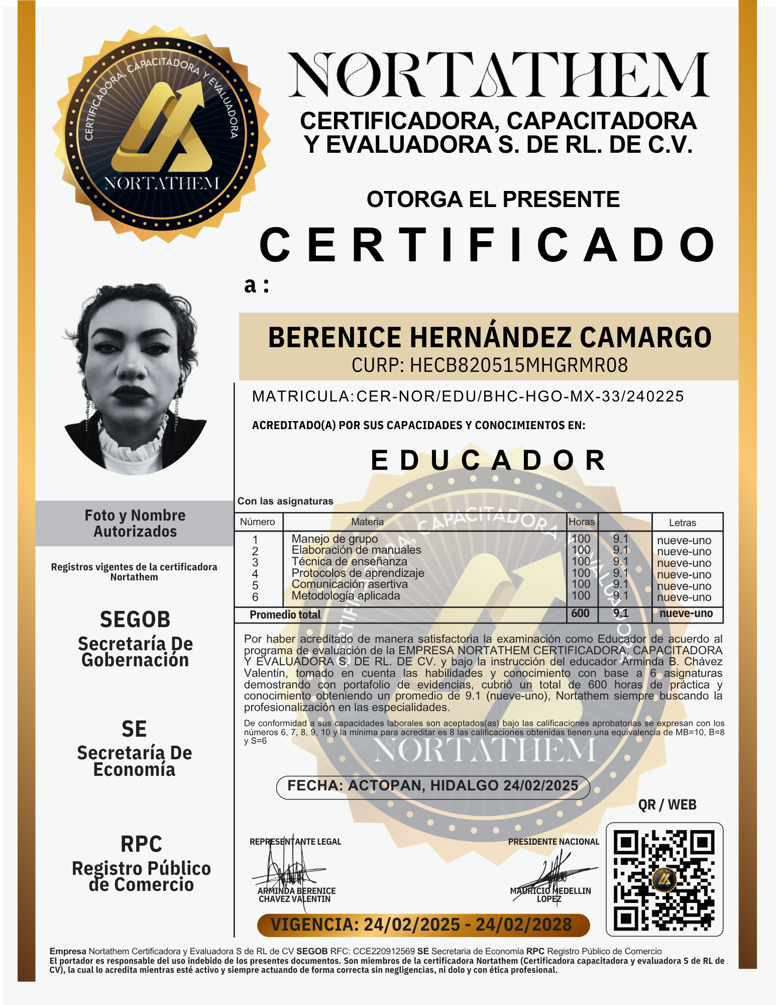 CERTIFICACIÓN DE EDUCADOR Y ESTILISMO INTEGRAL PAULINA CONTRERAS OSEGUERA